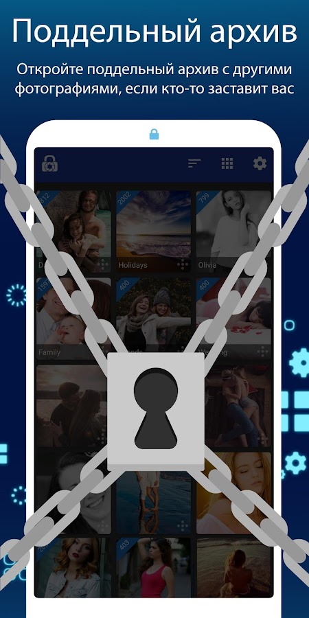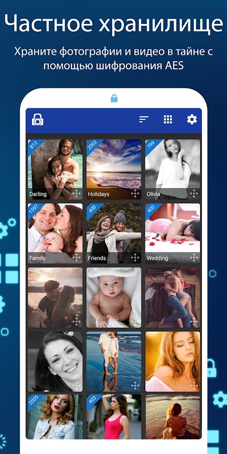 В отличии от других приложений фото и видео будут не только скрыты но и зашифрованы с помощью AES. Нет никакой возможности получить доступ к файлам без PIN-кода. Ваши личные фотографии и видео надежно хранятся в вашем частном фото хранилище.