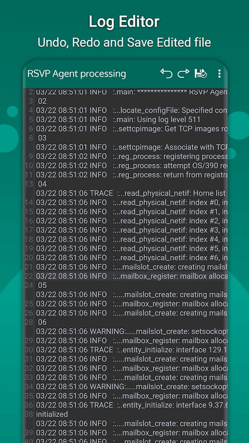 Log Viewer — идеальное решение для просмотра и редактирования файлов журналов на вашем телефоне. Вы можете редактировать файлы журнала с помощью удобного интерфейса, вносить изменения в текст и легко сохранять их. Программа для чтения журналов — идеальное решение для всех ваших потребностей в просмотре и редактировании журналов!