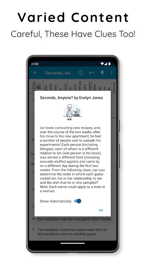 Это настоящие логические задачи из журналов Пенни Делл — удивительно сложные и оригинальные. Поддерживайте остроту ума с помощью увлекательных головоломок, которые развивают ваши навыки дедуктивного мышления.