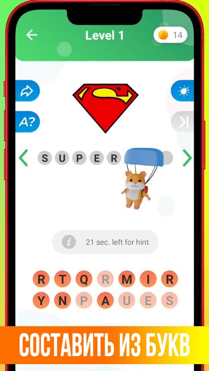 Подсказки и бонусы: используйте бомбы, открывайте буквы или целые слова, чтобы пройти сложные уровни.