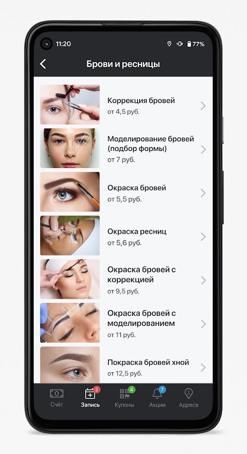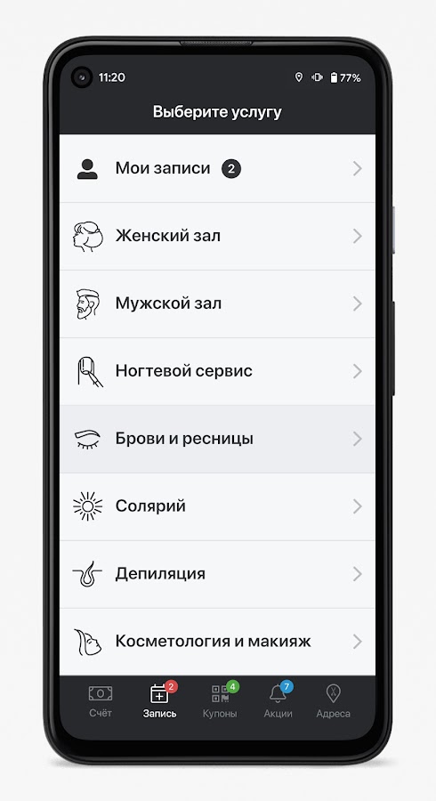 Скидки, подарки, акции, бонусы — для наших любимых и лояльных гостей мы предусмотрели абсолютно все! Кэшбэк — обязательно! И чем чаще — тем больше! Управляйте записями, тратьте бонусы на себя или своих близких, отправляйте подарки и получайте услуги бесплатно с нашим новым мобильным приложением! Скачивайте бесплатно и получайте доступ к нашим самым выгодным предложениям!
