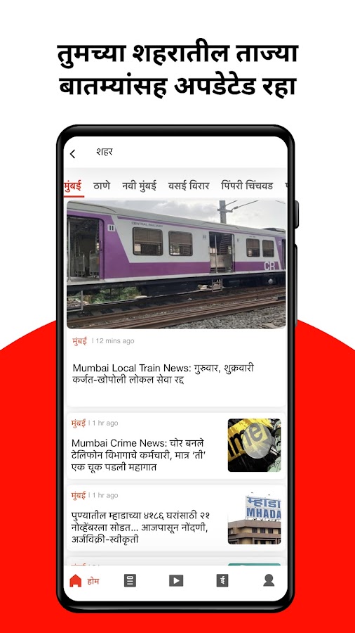 ◉Городские новости: выберите свой город и будьте в курсе местных новостей Махараштры, таких как Мумбаи, Пуна, Нагпур, Тхане и т. д.