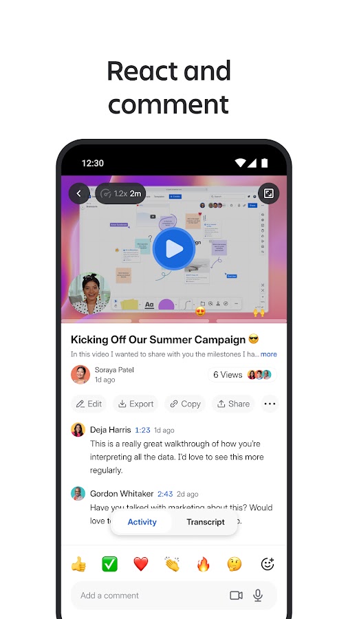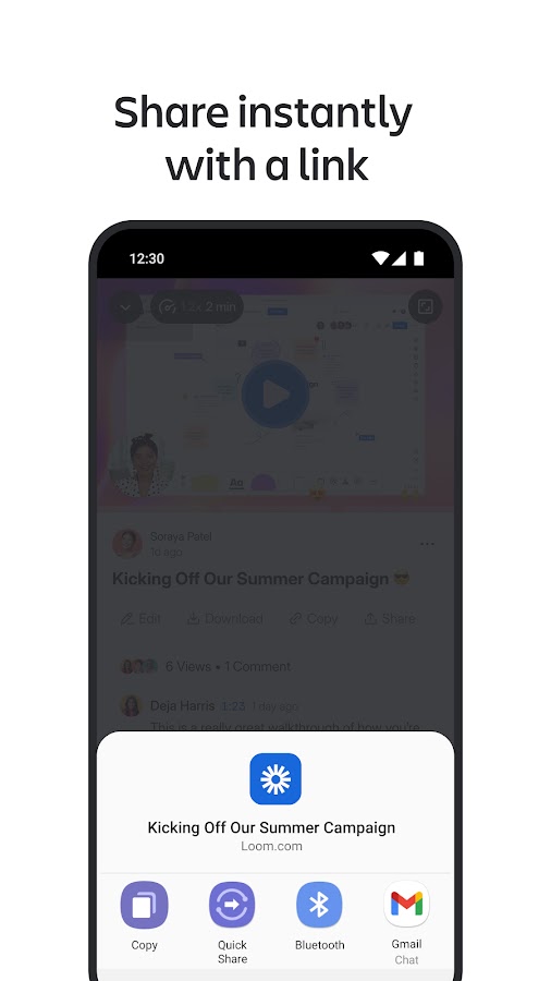 Loom для Android — это самый быстрый и простой способ записывать контент на ходу и оставаться на связи со своей командой. Независимо от того, записываете ли вы демонстрационные ролики продуктов, оставляете отзывы или просто делитесь своими мыслями, Loom позволяет оставаться в курсе событий с помощью асинхронного видео.