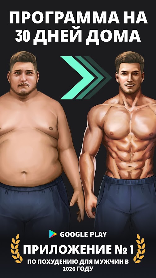 Лучшее приложение для мужчин, чтобы сжечь жир и сбросить вес дома! Суперэффективные упражнений помогут сжечь жир на животе, избавиться от обвислой груди и складок на талии. Следуйте 30-дневной программе – и вы сбросите вес и наберете форму всего за 5-10 минут в день!
