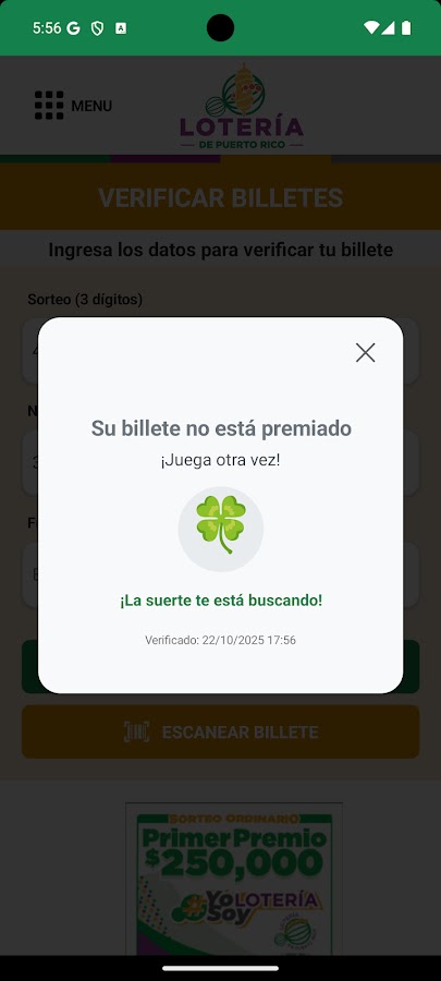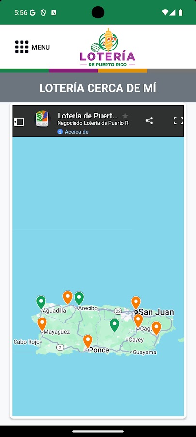 Мобильное приложение для Традиционной лотереи Пуэрто-Рико, где участники розыгрыша могут войти, чтобы подтвердить выигрышные номера за последние 180 дней и идентифицировать зарегистрированные обменные центры.