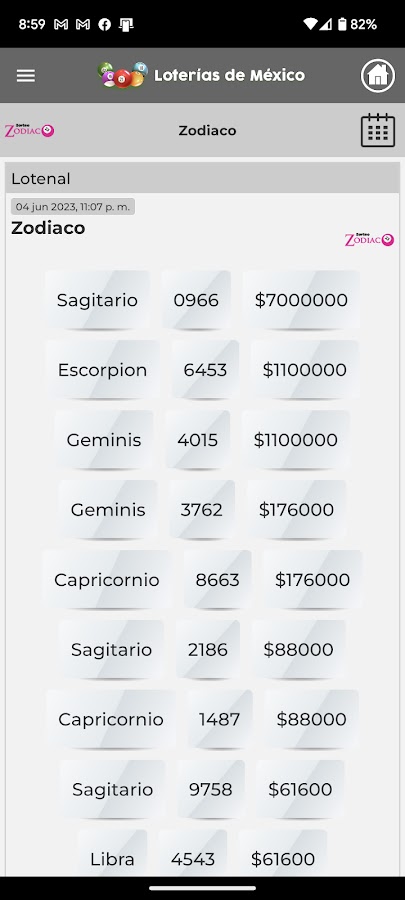 Приложение «Лотереи Мексики» предлагает мгновенные результаты основных лотерей в Мексике, таких как Прогнозы государственной помощи и Национальная лотерея (Lotenal). Вы также найдете статистику некоторых розыгрышей, чтобы узнать, какие числа выпадают чаще всего.