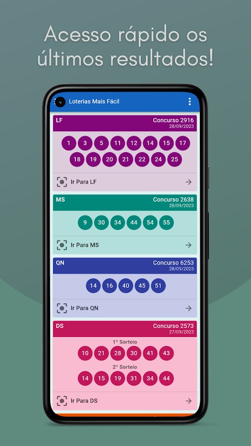 Приложение доступно для основных лотерей Бразилии, таких как LF, MS, LM, TM, QN и других.