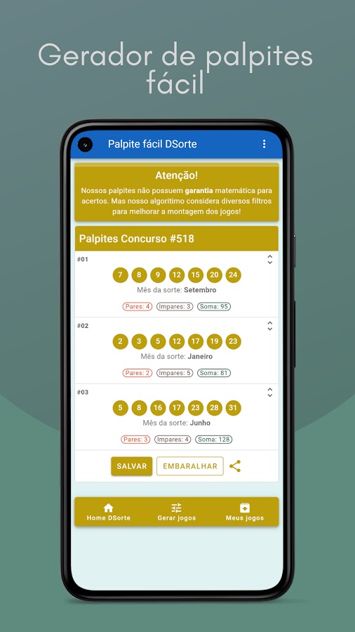 Loterias Mais Fácil — это приложение, которое поможет вам разумно создавать комбинации для основных лотерей Бразилии.