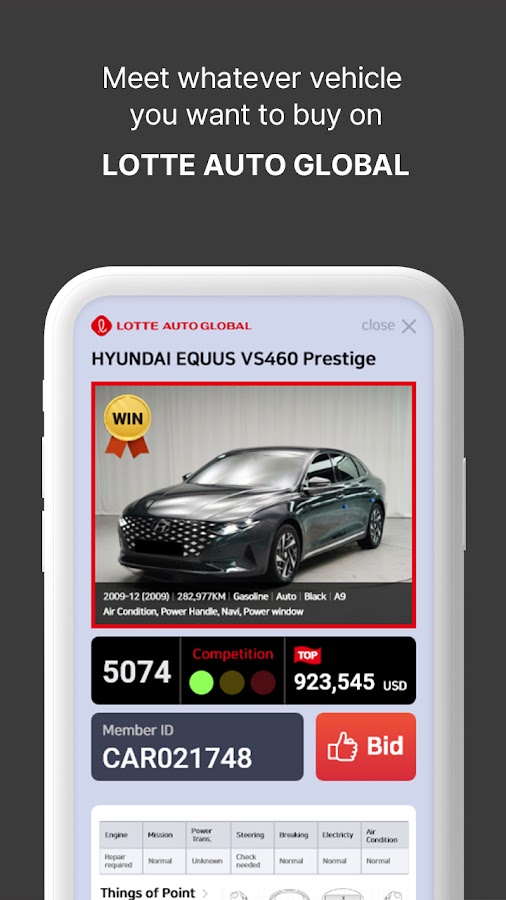 Скачайте приложение LOTTE AUTO GLOBAL AUCTION для Android бесплатно - последняя версия (1.0.8) уже доступна для установки на ваш телефон или планшет.