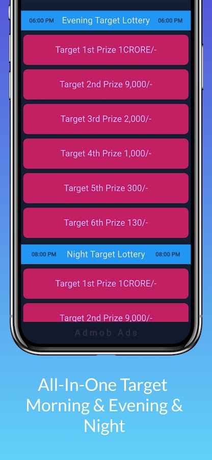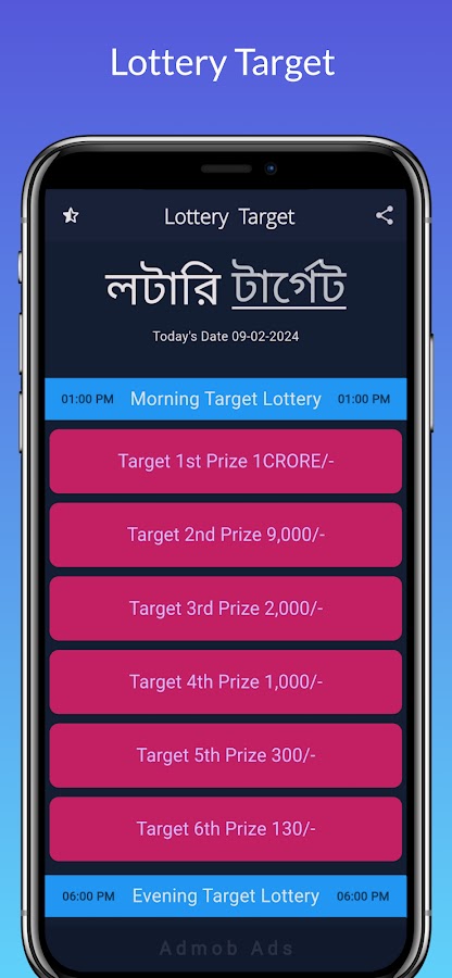Новая цель лотереи: бесплатное приложение для Android с публикацией целевого номера лотереи штата Нагаленд и лотереи штата Западная Бенгалия, а также время от времени лотереи — 13:00, 18:00 и 20:00.