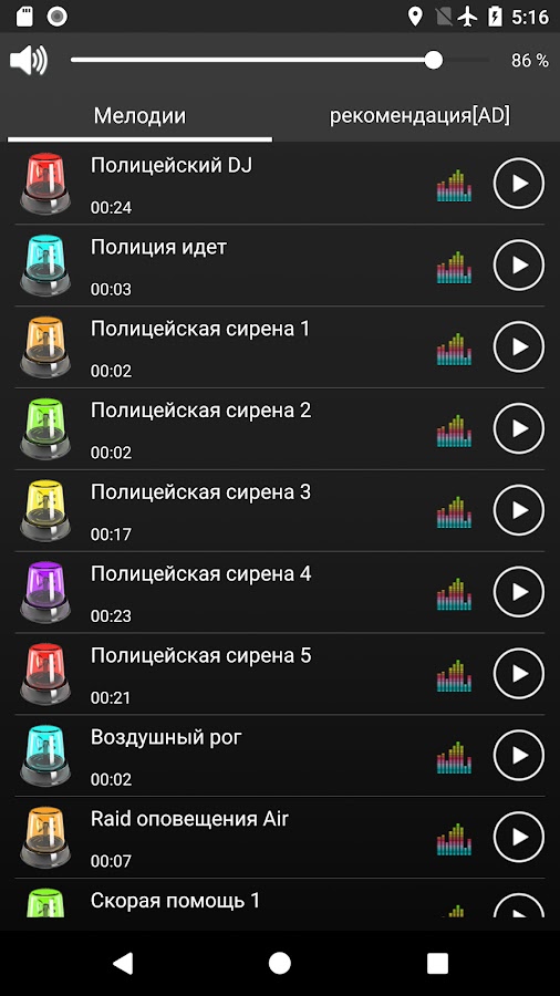 Множество супер крутых звуков сирены полиции и мелодий в этом бесплатном приложении!