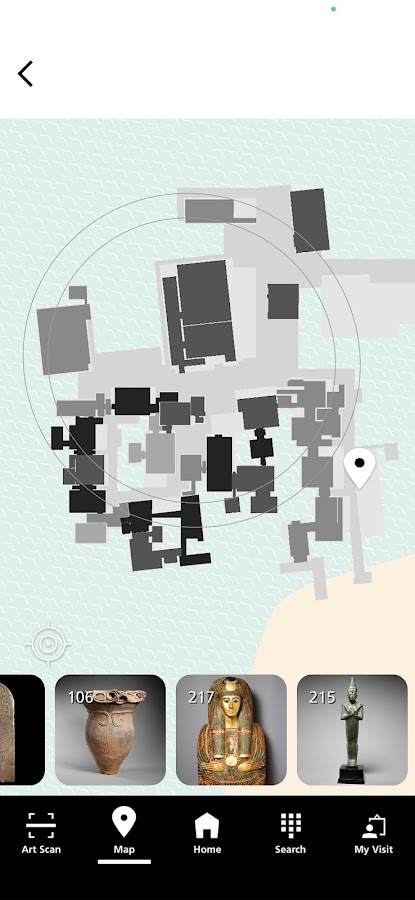 Внутри музея наша новая функция Art Scan (бета-версия) дает вам доступ к содержимому произведений искусства прямо на экране, а интерактивная карта поможет вам ориентироваться в галереях.