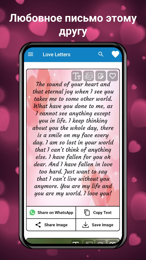 Загрузите наше приложение прямо сейчас, чтобы получить доступ к коллекции романтичных посланий совершенно БЕСПЛАТНО! С этим приложением в вашем статусе на Facebook, WhatsApp, Twitter, Instagram будут всегда оригинальные, красивые и оригинальные сообщения.