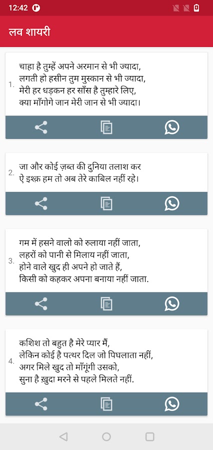 Если вы влюблены, то будьте готовы пережить ностальгию с Love Shayaris. Установите виджет Love Shayari, чтобы открыть для себя самые красивые любовные Shayari, которые наполнят вашу жизнь романтикой и дадут выражение чувствам в вашем сердце. Сделайте день своего возлюбленного особенным, создав настроение — читайте, декламируйте и делитесь любовными шайари. Носите эту романтическую коллекцию стихов в своем мобильном телефоне и отправляйте красивые любовные шайари, когда и где угодно. Сделайте ваши эмоции еще более особенными с нашими словами и наполните свою жизнь магией любви.