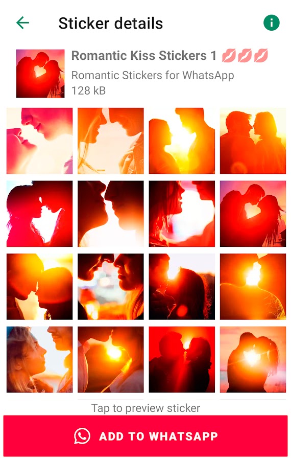 Так зачем ждать? Загрузите «Любовные стикеры для WhatsApp» сегодня и начните делиться любовью со своим партнером. Среди более чем 1000 новых романтических наклеек вы обязательно найдете идеальную наклейку для любого настроения и случая. Выразите себя с помощью любовных стикеров и сделайте свои чаты более романтичными и красивыми, чем когда-либо прежде!