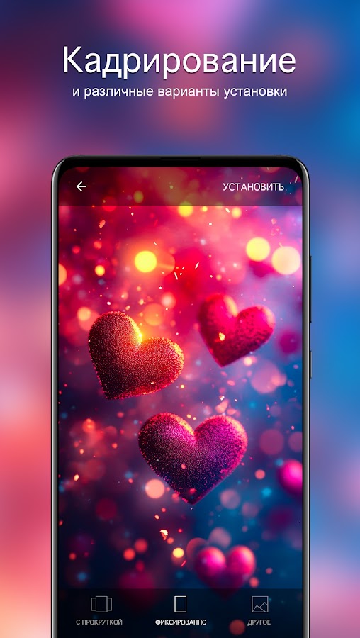 • Предпросмотр и кадрирование перед установкой — сразу видно, как фон будет выглядеть на экране.