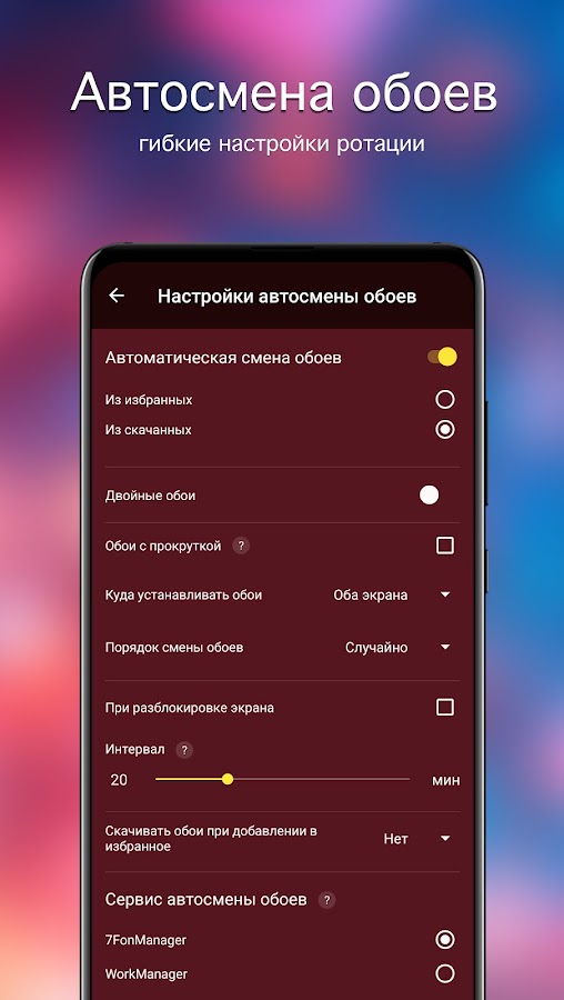 Включайте автоматическую смену — фон будет меняться автоматически.