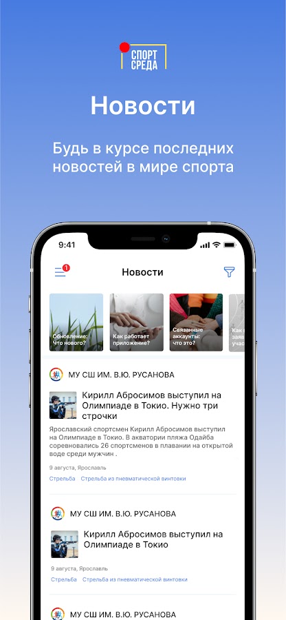 Приложение позволяет спортсменам и их родителям получать свежие новости, информацию о тренировках и мероприятиях. Получать награды за успехи на тренировках. Следить за динамикой различных показателей.