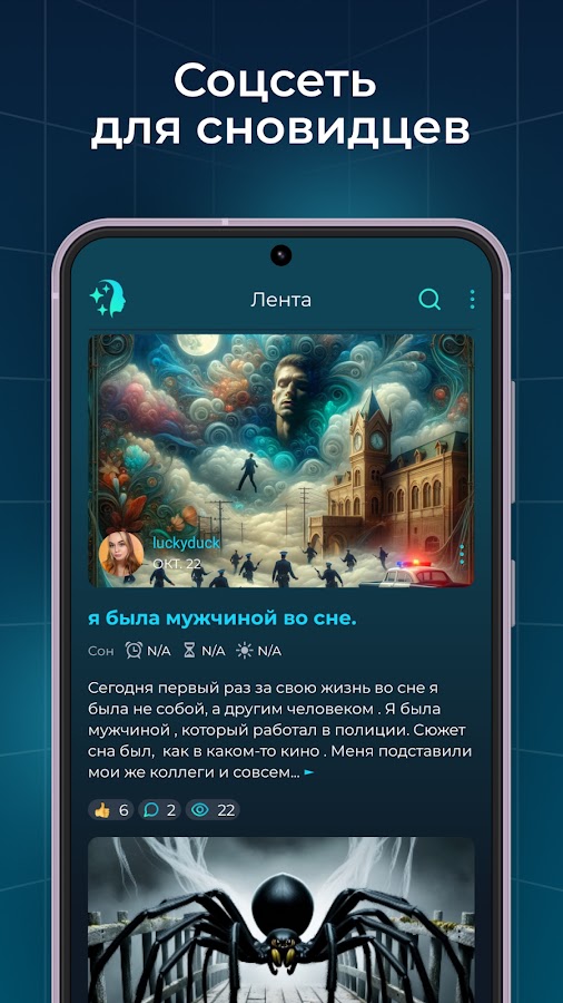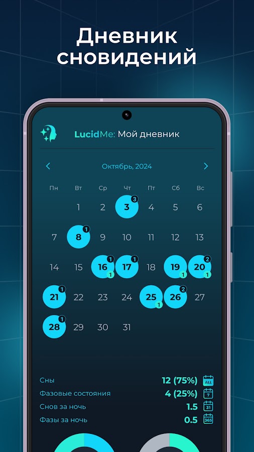 LucidMe: Журнал Сновидений — это инструмент, который не только помогает освоить искусство сновидений, но и позволяет делиться своим опытом с друзьями, создавая сообщество любителей снов. Этот незаменимый помощник для сновидцев и осознанных сновидцев предоставляет необходимые инструменты и ресурсы для совместного исследования увлекательного мира снов. Открывая потенциал вашего подсознания, LucidMe научит вас управлять своими снами и делиться с друзьями уникальным опытом. С такими функциями, как дневник сновидений, интерпретация снов и возможность делиться с друзьями, LucidMe помогает погрузиться в путь самопознания, творчества и общения.