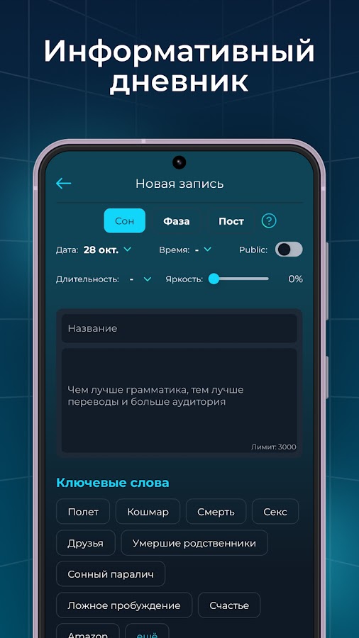 Записывайте свои сны, размышляйте о своих переживаниях и отслеживайте свой прогресс на пути к ярким и осознанным сновидениям.