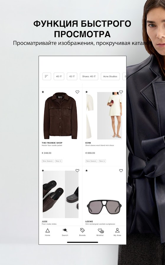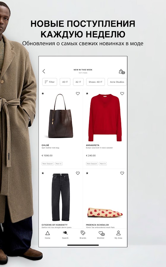 Посетите персонализированную главную страницу на основе ваших любимых товаров и брендов: от сумок Stella McCartney и трикотажа Jil Sander до кроссовок adidas и блузок Chloé.
