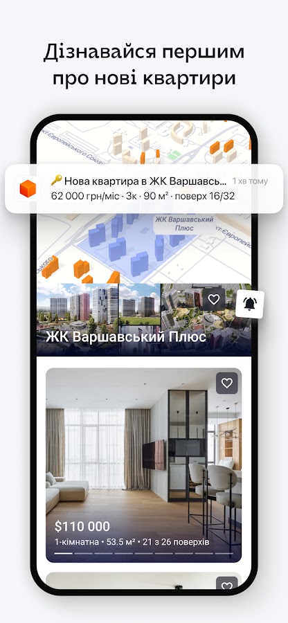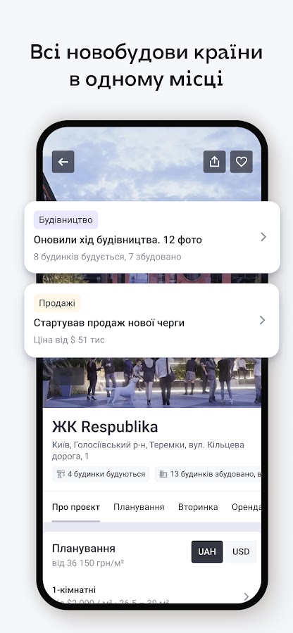 С нашим приложением вы всегда будете в курсе последних новостроек, а наши фотокорреспонденты ежедневно отслеживают ход их строительства. С нами вы сможете просмотреть новостройки в разных регионах, включая Киев и пригород, Львов и пригород, Одессу, Днепр, Ивано-Франковск, Тернополь, Хмельницкий, Винницу, Полтаву, Черновцы, Луцк, Черкассы, Ровно и Житомир.