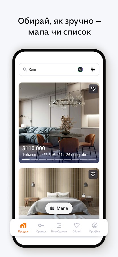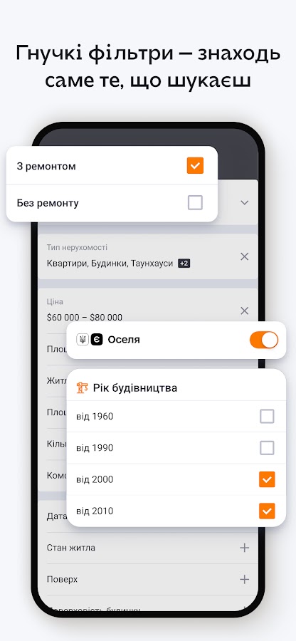 • максимально удобный интерфейс для легкого поиска квартир, домов и другой недвижимости.