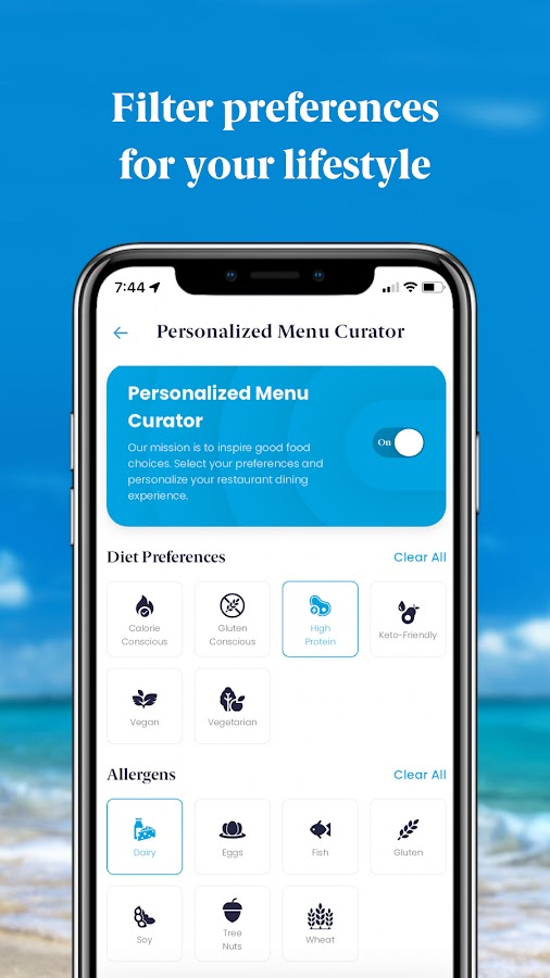 Обедайте в соответствии со своим образом жизни: изучайте и фильтруйте меню с помощью куратора персонализированного меню.