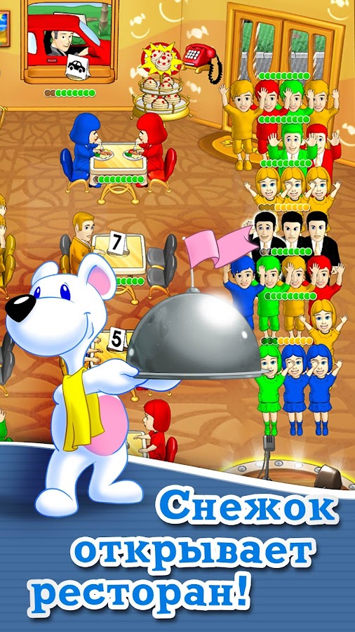 Медведь Снежок открывает собственное заведение и гарантирует простое и заводное развлечение. Усадить, взять заказ, принести еду, рассчитать, убрать со столов… Еще цвета подобрать и действия спланировать, чтобы все посетители остались довольны и не поскупились на чаевые! И не забыть про торопыг-водителей и VIP гостей.