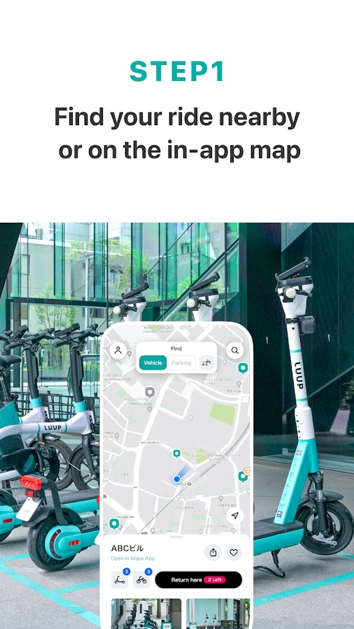 «LUUP» — это сервис совместного пользования, который позволяет вам кататься на небольших электровелосипедах и электросамокатах по городу из любой точки мира и возвращать их в указанное вами место. В настоящее время сервис доступен в Токио, Осаке, Киото, Иокогаме, Уцуномии, Кобе, Нагое, Хиросиме, Сендае, Фукуоке, Китакюсю и Хамамацу! Пожалуйста, используйте этот сервис для поездок на работу, в школу, за покупками и в другие места, которые находятся слишком далеко, чтобы дойти пешком!