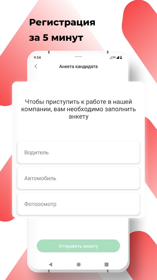 Заполните данные на экране, добавьте фото автомобиля, отправьте заявку, и получите данные для авторизации — теперь вы можете приступать к заказам.