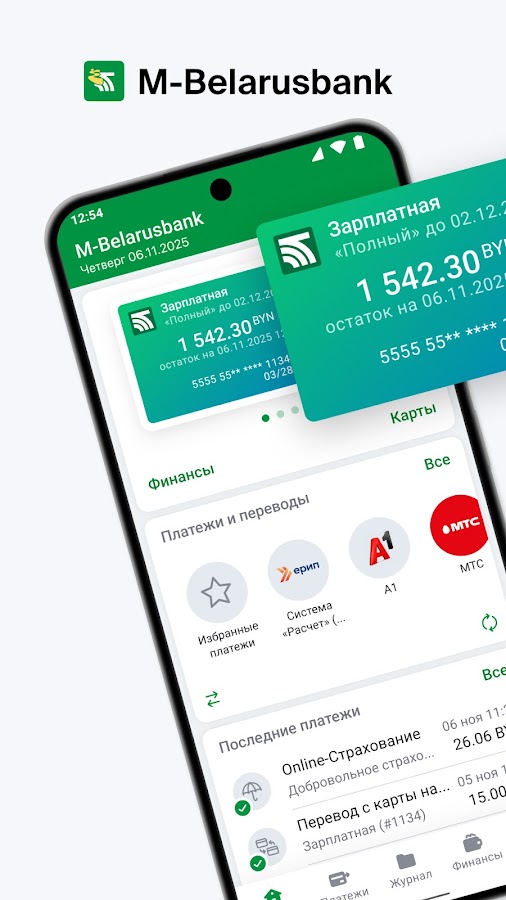 M-Belarusbank — официальный мобильный банкинг ОАО «АСБ Беларусбанк» для держателей платежных карт банка. Приложение позволяет выполнять все основные банковские операции в телефоне: управлять счетами, оплачивать услуги, совершать переводы, оформлять и пополнять вклады. Полный доступ к финансам в любое время у вас под рукой — быстро, удобно и безопасно.