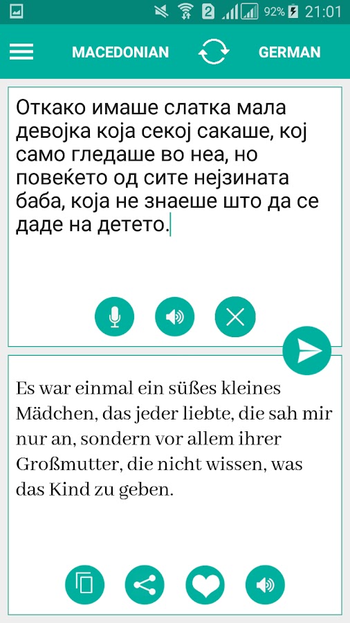 Бонусная функция — Изучите и освойте произношение, поскольку македонско-немецкий переводчик имеет встроенную аудиофункцию. Слушайте переведенный текст и удобно общайтесь с друзьями, подругами, парнями, членами семьи или туристами.