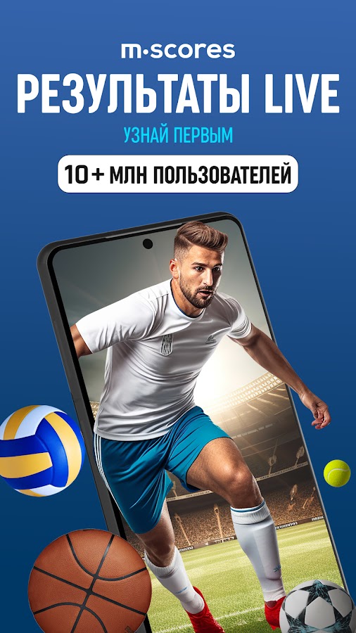С помощью M Scores вы можете в режиме реального времени получать результаты матчей по баскетболу, волейболу и теннису так же быстро, как и в слачае с футболом! Следите за играми с помощью нашего удобного интерфейса.