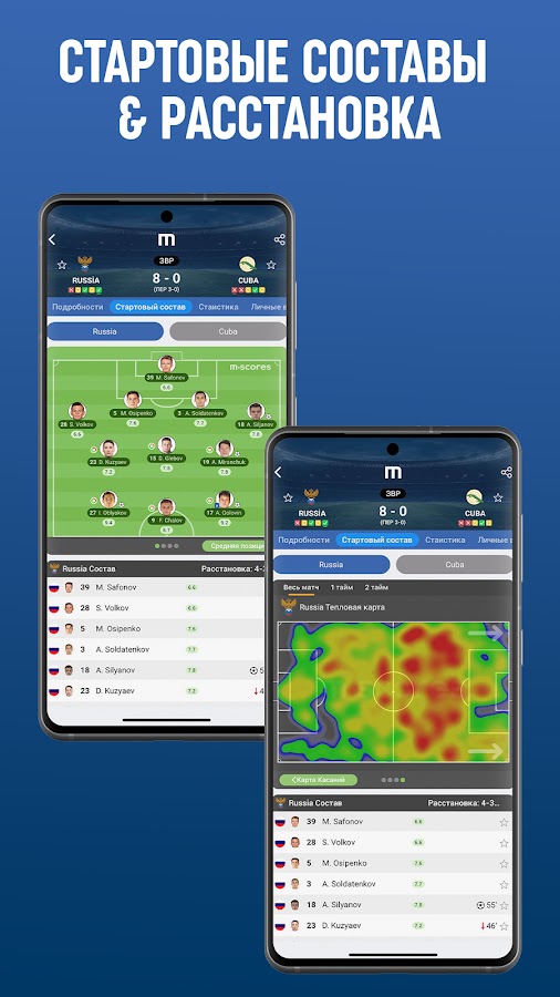С помощью M Scores вы можете внимательно следить за своими любимыми командами и их матчами. Мгновенно получайте уведомления о голах, красных карточках, результатах в перерывах и матчах.