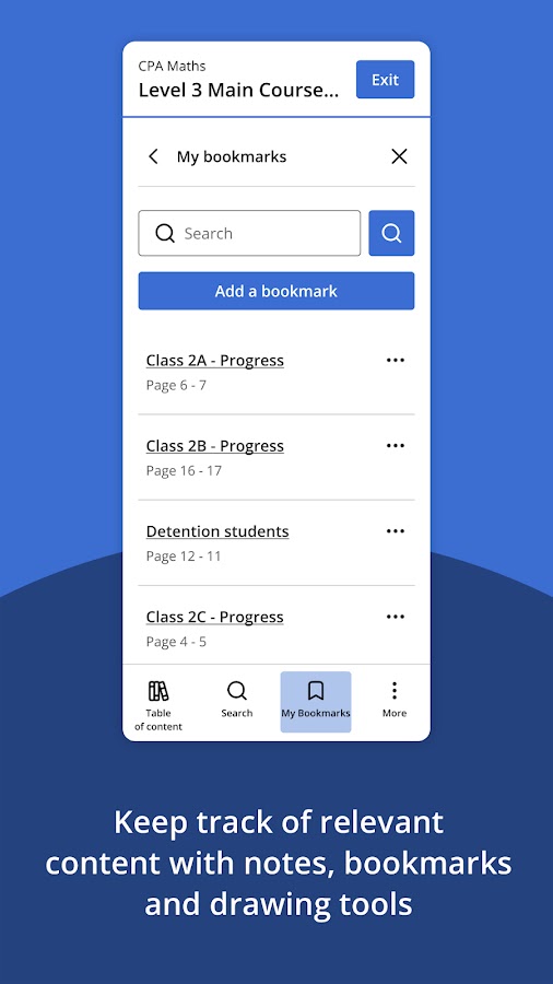 Приложение предоставляет доступ ко всему содержанию книг, анимациям, видео и другим интерактивным занятиям, которые предоставляются в рамках вашего курса Macmillan Education. Преподаватели и учащиеся могут добавлять свои собственные заметки, добавлять страницы в закладки, чтобы найти их позже, и делать аннотации на странице книги. Контент можно легко загрузить и использовать в автономном режиме, когда это необходимо.