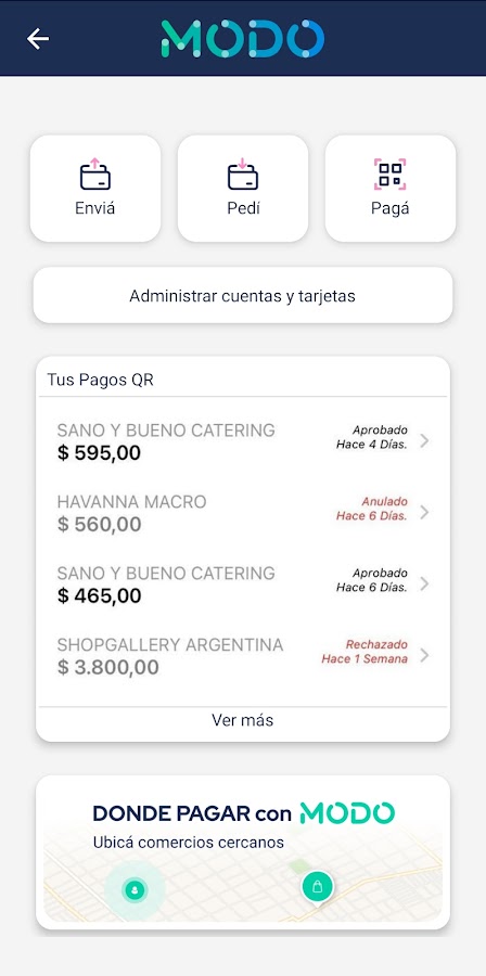 • Отправляйте деньги для снятия в любом банкомате Banelco без использования дебетовой карты.