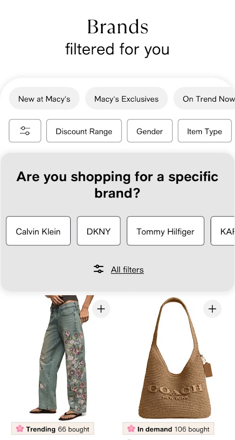Загрузите приложение Macy’s сегодня, чтобы совершать покупки легко и выгодно, используя эксклюзивные скидки, купоны и предложения!