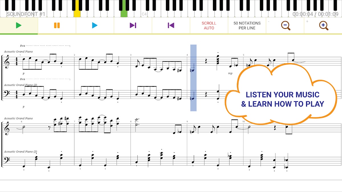 Мы надеемся, что это приложение идеально подойдёт для композиторов, авторов песен, учащихся музыкальных учебных заведений и всех, кто хочет легко писать музыку.