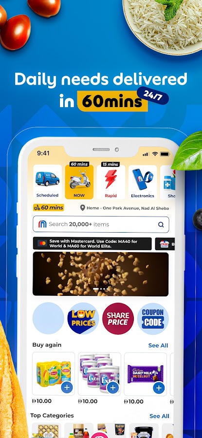 Приложение MAF Carrefour — ваш лучший выбор, когда речь идет о покупках продуктов, электроники, предметов домашнего обихода, бытовой техники, предметов личной гигиены, косметики и многого другого. Выбирайте из огромного разнообразия свежих продуктов со всего мира, готовых к доставке к вашему порогу.