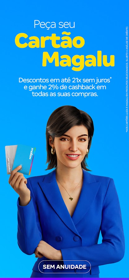 — Карта Magalu: Отсутствие годовой платы навсегда и 2% кэшбэка на все ваши онлайн-покупки, включая Черную пятницу.