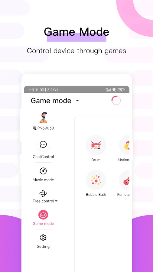 — Режим музыки, пользователи могут выбирать свои любимые песни, слушать романтические мелодии, и продукт меняется с ритмом песни.