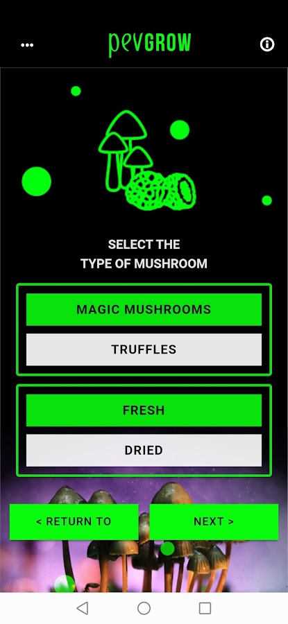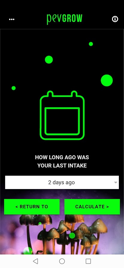 С помощью этого приложения-калькулятора дозы волшебных грибов легче найти нужное количество трюфелей или грибов для каждого человека и каждого момента. Его использование очень простое, вам просто нужно следовать его инструкциям, и менее чем за минуту вы будете знать точное количество псилоцибиновых грибов, которое нужно потреблять для достижения желаемого эффекта.