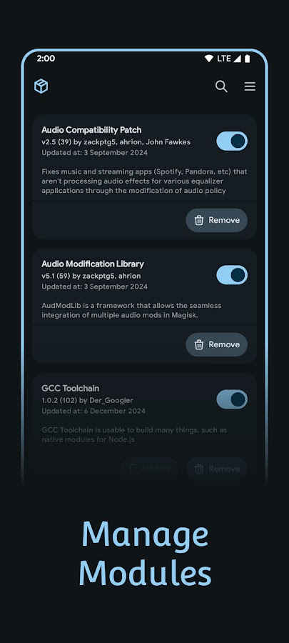 • Расширенное управление: включите, отключите или удалите модули прямо из приложения.