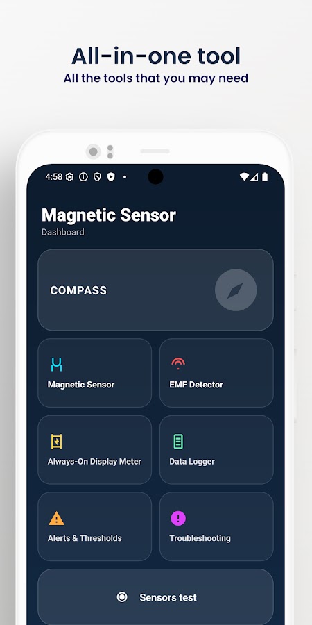 Измеряйте магнитные поля с высокой точностью и уверенно ориентируйтесь, используя встроенное оборудование вашего телефона. Это приложение превращает ваше устройство в надежный измеритель ЭМП, гаусс-метр и автономный компас. Разработанное для учителей, студентов, любителей самостоятельного ремонта и любителей активного отдыха, оно предоставляет четкие данные в режиме реального времени без лишних сложностей.