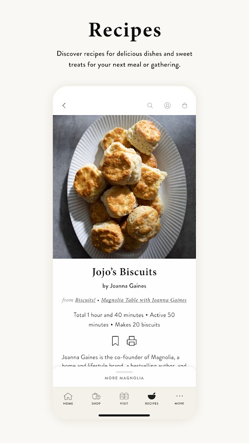 • Получите доступ к оригинальным рецептам, которые можно попробовать самостоятельно, и прочитайте последние записи Джоанны и многое другое в блоге Магнолии.