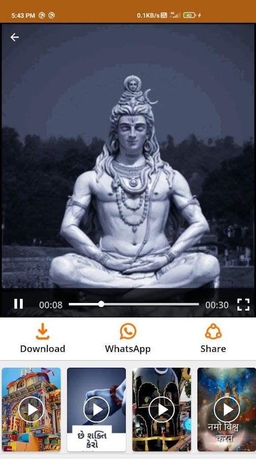 Приложение Mahadev Video Status предоставляет множество коротких видео Шивы, статус видео Шив Тандав, лирический полноэкранный статус видео Махакала, статус видео Шива Стротра, пожелания Шравана, статус Шомвара, статус Ади йоги, статус Шив Парвати. Это приложение помогает напрямую размещать статус видео в социальных сетях. вы можете легко загружать и делиться видео в социальных приложениях. одно из лучших приложений для статуса видео Махадева (лирические видео).