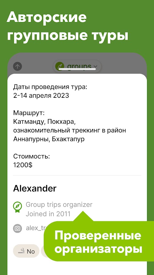 — Общайтесь в удобном чате, создавайте и присоединяйтесь к неповторимым путешествиям!