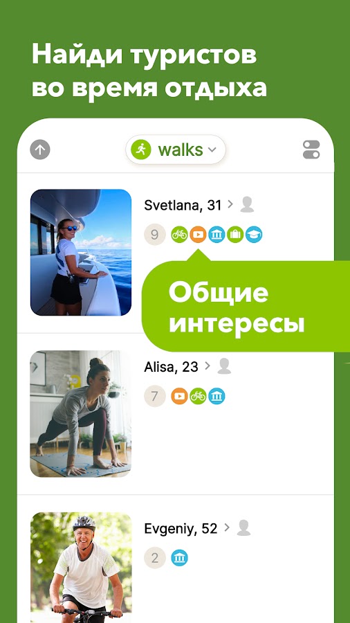 — Для поиска попутчиков, групп и прогулок настройте соответствующий фильтр поиска.