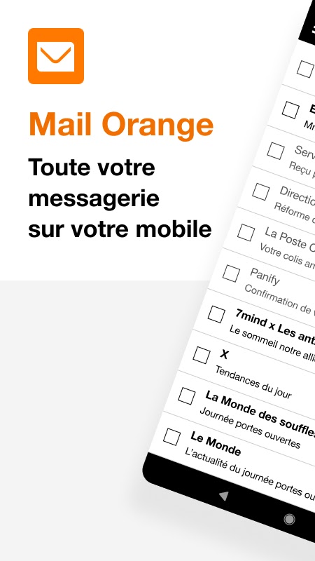 • Классифицируйте и удаляйте свои электронные письма на своем мобильном телефоне. Они также будут удалены при каждом доступе к вам из Интернета: Orange.fr или профессиональных сообщений.